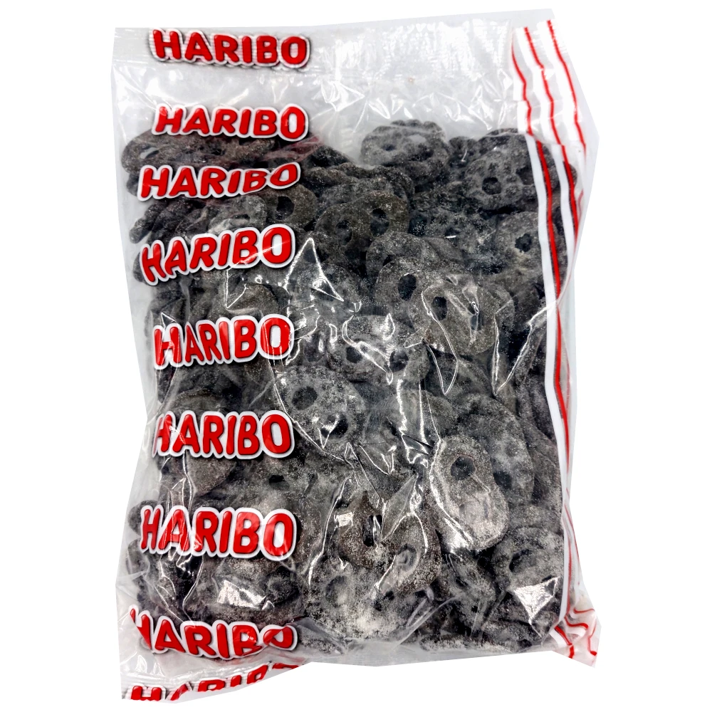 Haribo pretzels in a kilo bag. Lightly salted licorice Pretzel with a delicious sugar coating.